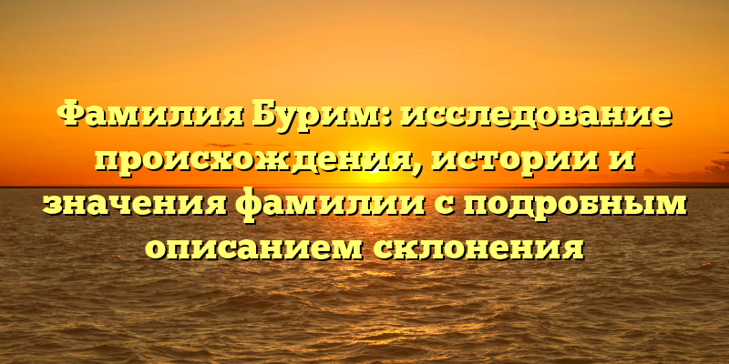 - Изучаем происхождение и значение фамилии Бурим: полное руководство по склонению исторически богатой фамилии