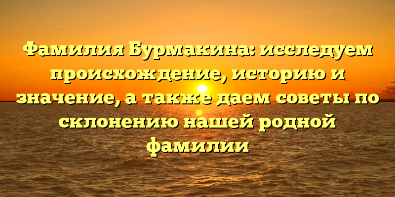 История и происхождение фамилии Бурмакина: советы по правильному склонению — SEO-заголовок, который привлекает внимание читателей и точно отражает содержание статьи.