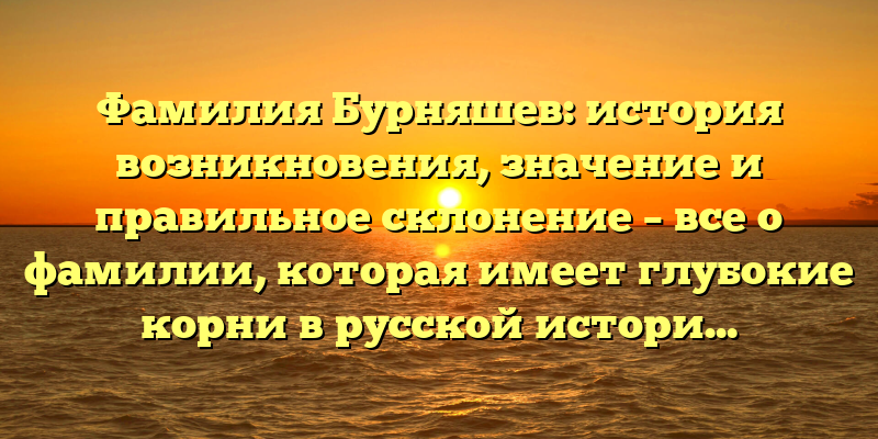 Фамилия Бурняшев: история, значение и правильное склонение — все, что нужно знать о глубокой русской культуре.