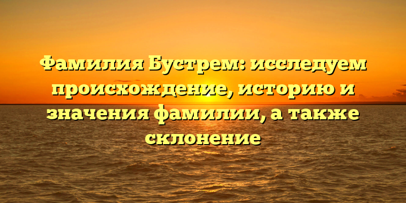 - Раскрываем тайны фамилии Бустрем: происхождение, история и значения, а также правильное склонение