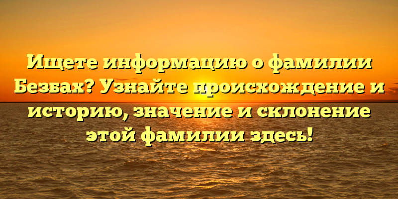 Раскрываем тайны фамилии Безбах: происхождение, история и значение – всё, что нужно знать!