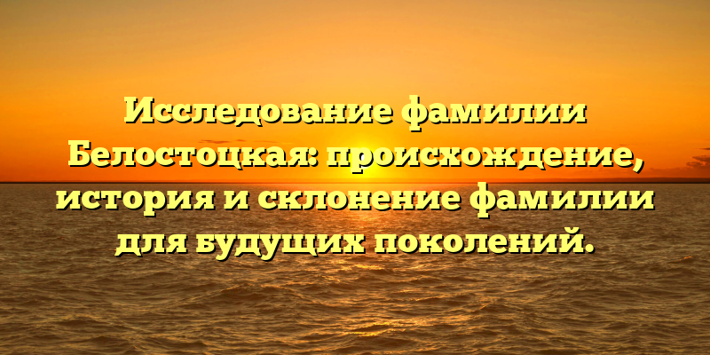 - Происхождение и история фамилии Белостоцкая: узнайте все о своих предках и правильном склонении фамилии для потомков