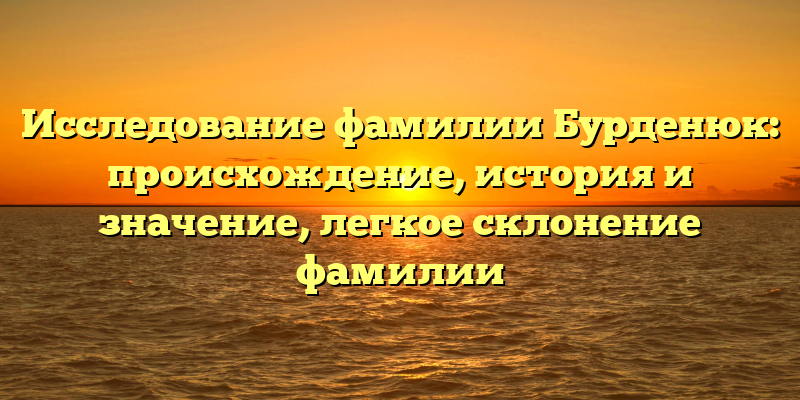 - Исследование фамилии Бурденюк: происхождение, история и значение — все, что вы хотели знать о своей фамилии