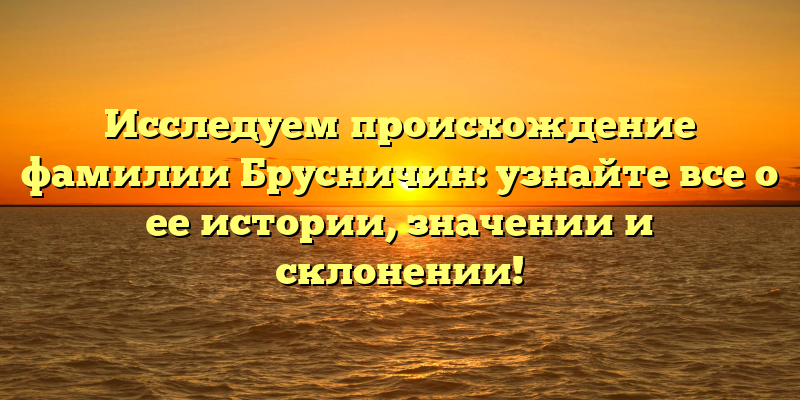 В этой статье мы расскажем об истории фамилии Брусничин, ее значении и способах склонения. Вы узнаете много интересного об этой редкой фамилии и ее происхождении.