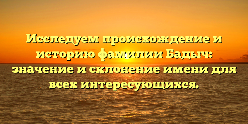 - Открываем тайны происхождения фамилии Бадыч: значение и история имени для всех, кто хочет узнать больше.