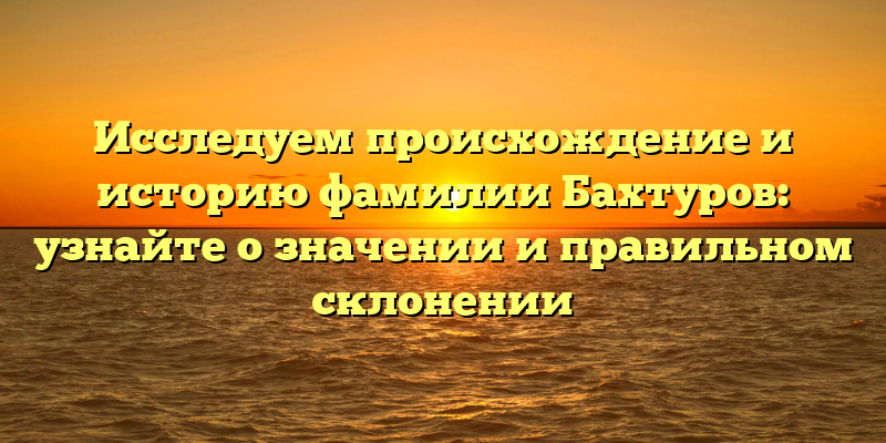 Бахтуровы: происхождение, история и правила склонения фамилии — все, что нужно знать!