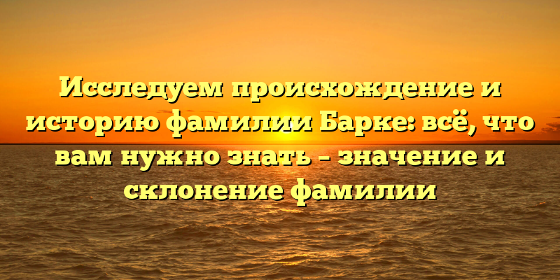 - Погружаемся в истоки фамилии Барке: происхождение, значение и склонение — всё, что нужно знать!