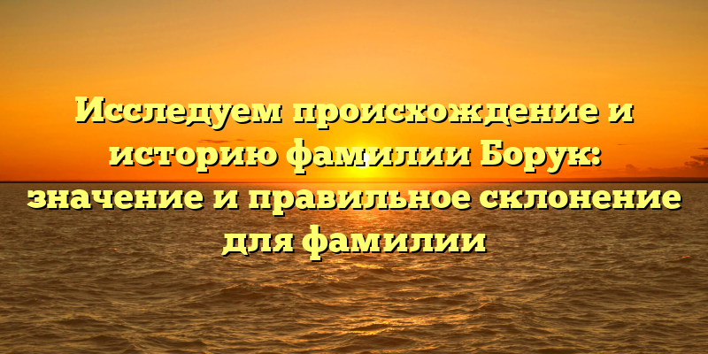 Борук — одна из распространенных фамилий в России. Она имеет историю, значения и правила склонения. Если вы хотите узнать больше об этой фамилии, то вы попали в нужное место.