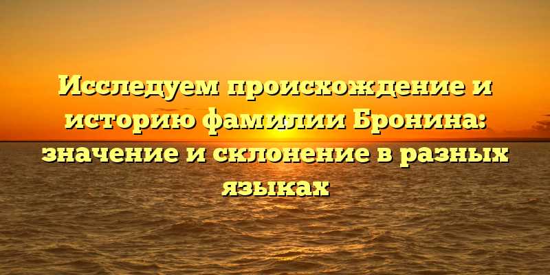 Фамилия Бронина является достаточно распространенной в России, но ее происхождение и история остаются малоизвестными для многих. В этой статье мы постараемся раскрыть эти тайны, а также расскажем о значении и склонении этой фамилии в разных языках.