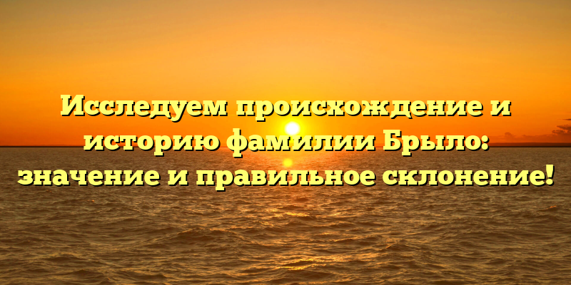 - Фамилия Брыло: происхождение, история и правильное склонение — все, что вам нужно знать!