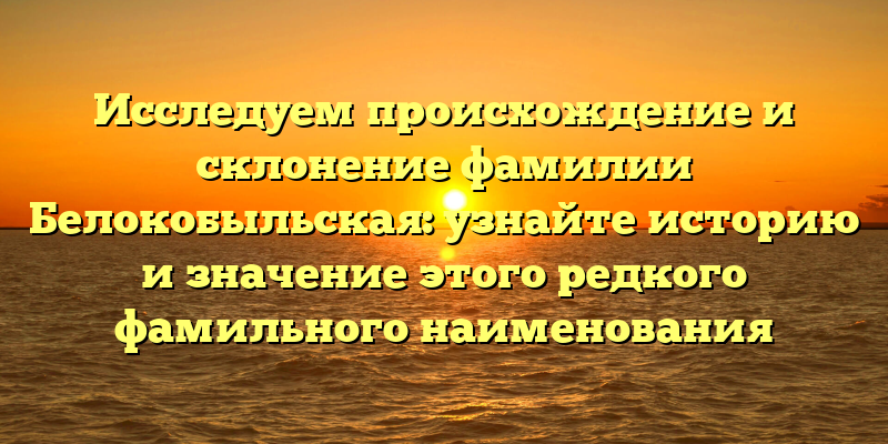 Отслеживаем корни и изменения фамилии Белокобыльская: раскрываем тайны редкого рода