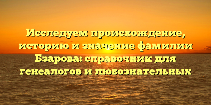 - Корни фамилии Бзарова: источники, факты и интересные детали, которые вы обязательно должны знать.