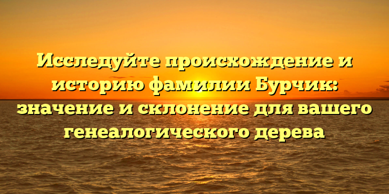 - Раскройте тайны происхождения фамилии Бурчик: исследуйте историю и значение для своего генеалогического дерева