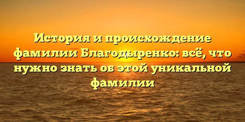 Откуда возникла фамилия Благодыренко? Интересные факты и история рода, которые вас удивят!