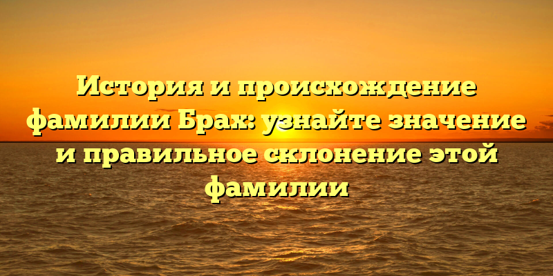 Фамилия Брах — одна из самых распространенных в мире. Ее название имеет несколько разных интерпретаций и существует множество версий происхождения этой фамилии. В данной статье мы рассмотрим исторические сведения, которые помогут узнать значение и правильное склонение фамилии Брах.