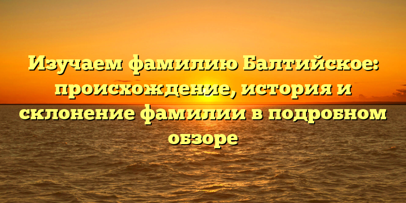 Полный гид по фамилии Балтийское: происхождение, склонение и история