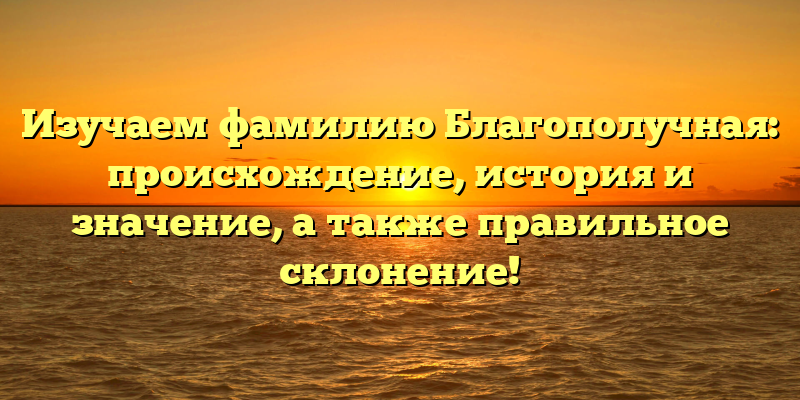 Фамилия Благополучная: происхождение, история и значение, а также секреты правильного склонения — полное руководство.