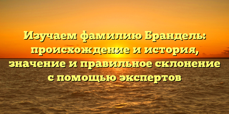 - Погружаемся в происхождение и историю фамилии Брандель: эксперты раскрывают значение и делятся секретами правильного склонения