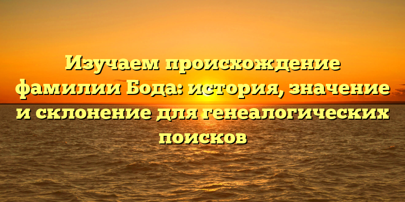 - Раскрываем тайны фамилии Бода: история происхождения, значения и раскрытие склонения для успешных генеалогических поисков