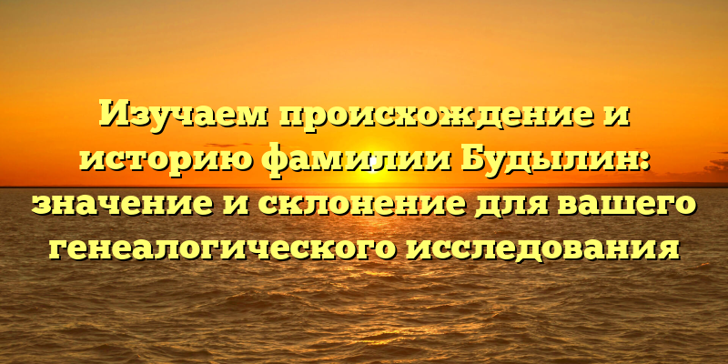 - Узнайте происхождение и историю фамилии Будылин: как это поможет вашим генеалогическим исследованиям
