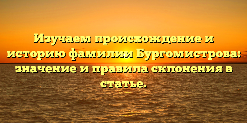 - Фамилия Бургомистрова: происхождение, история и правила склонения — раскрываем все тайны