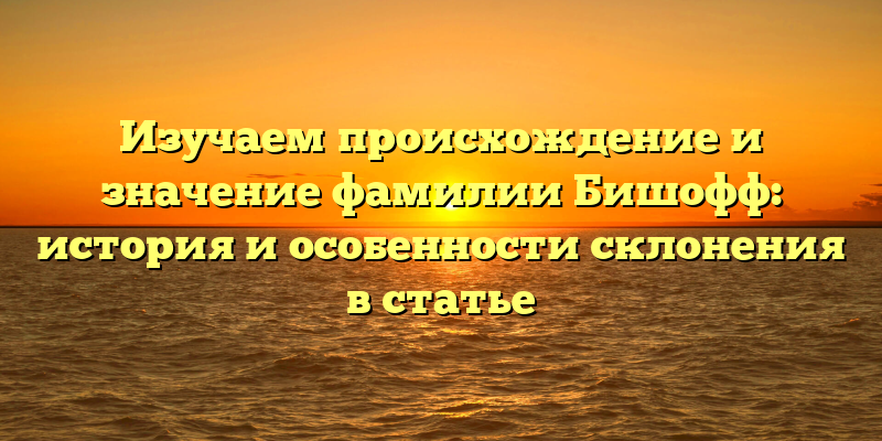 - Фамилия Бишофф: история происхождения и особенности склонения в подробном обзоре нашего сайта