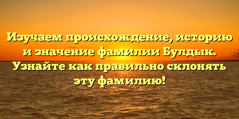 - Фамилия Булдык: происхождение, история и значение. Полное руководство по правильному склонению этого имени для уверенного общения!