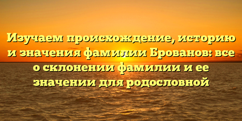 - Полный гайд по фамилии Брованов: происхождение, история, значение и склонение для создания идеальной родословной