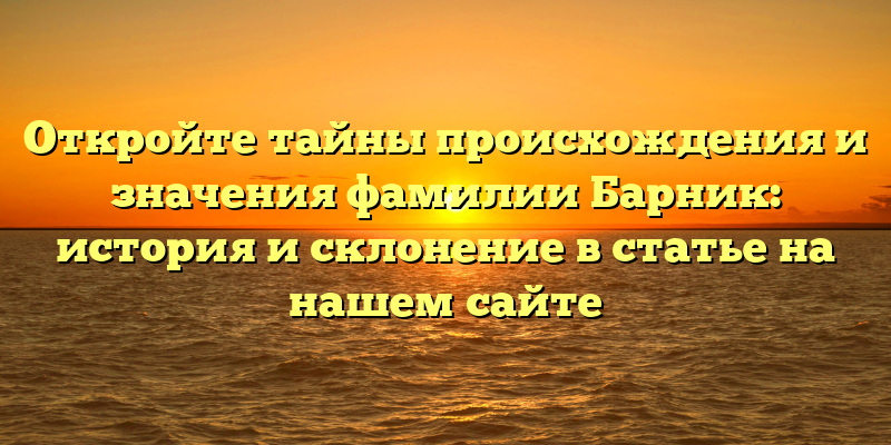 - История и значение фамилии Барник: раскрытие ее тайн на нашем сайте