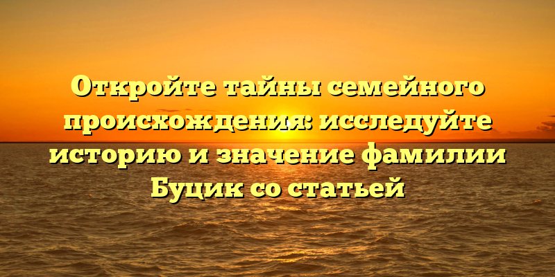 Исследуйте свой коренной происхождение и расшифруйте значение фамилии Буцик с нашей статьей!