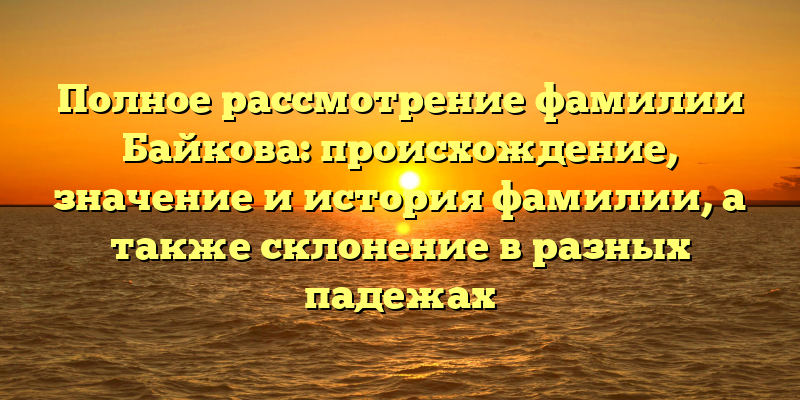 - Фамилия Байкова: происхождение, значение и история, а также склонение в разных падежах — полное рассмотрение