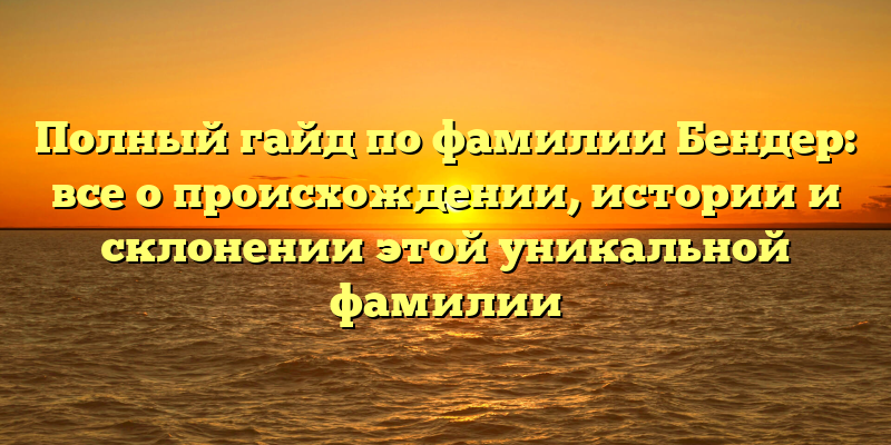 - История и происхождение фамилии Бендер: полный гайд по склонению этой уникальной фамилии