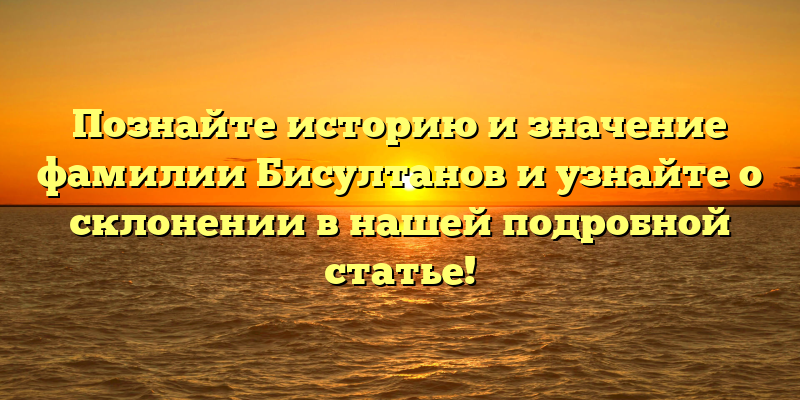 Бисултанов — это фамилия, имеющая свою историю и значение. Если вы хотите узнать больше о происхождении и склонении этой фамилии, то вы попали в нужное место!