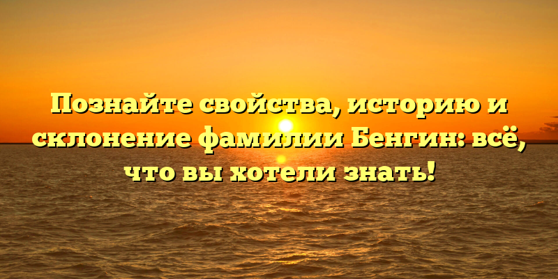 - Изучаем фамилию Бенгин: ее происхождение, значения и правила склонения