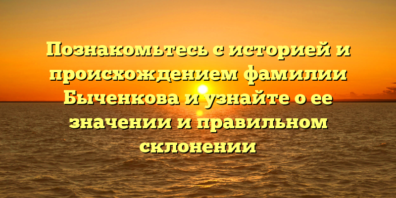 - Как возникла фамилия Быченкова и как ее правильно склонять: интересная история и значение