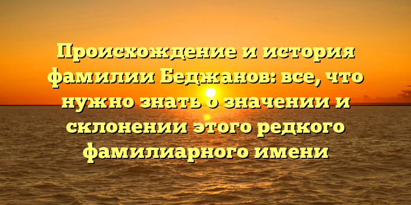 - Откройте тайну происхождения и истории редкой фамилии Беджанов — вся правда о значении и склонении имени