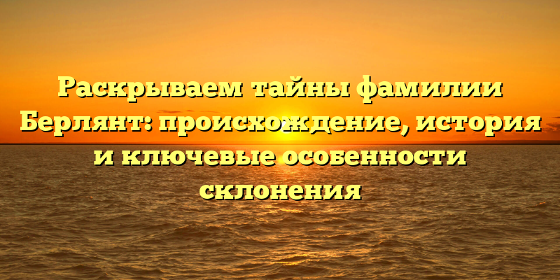 Берлянт: происхождение, история и склонение — раскрытие тайн генеалогии