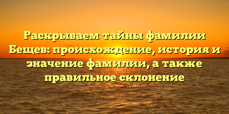 Фамилия Бещев: происхождение, история и значение, а также секреты правильного склонения — полный гид по славной фамилии.
