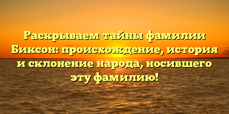 - Раскрытие тайн фамилии Биксон: найдите всё о происхождении, истории и склонении этой уникальной фамилии!