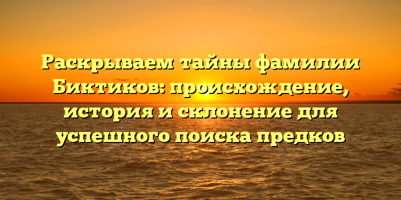 - Открываем историю фамилии Биктиков: исследуем происхождение и склонение для эффективного поиска предков