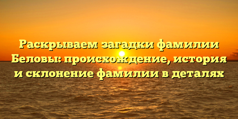 - Тайны фамилии Беловы: история и происхождение, которые вы никогда не знали, раскрыты в нашей подробной статье