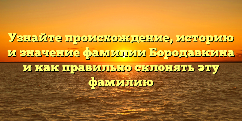 В этой статье вы узнаете о происхождении фамилии Бородавкина, о том, как правильно склонять эту фамилию, а также что она может значить для её носителей. Если вы являетесь носителем этой фамилии или просто интересуетесь историей фамилий, то этот материал будет очень полезен для вас.