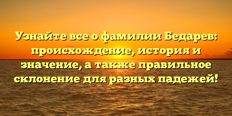 Узнайте все о фамилии Бедарев: происхождение, история и значение, а также правильное склонение для разных падежей!