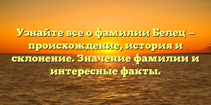 Исследование фамилии Белец: происхождение, история и удивительные факты о потомках этого имени