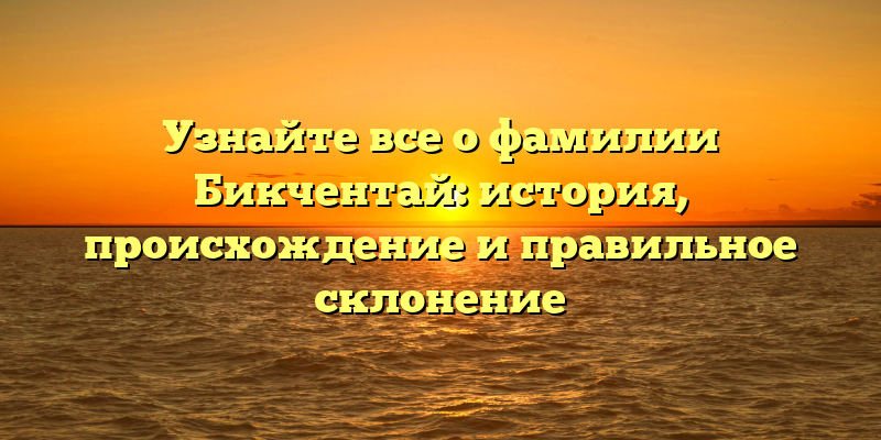 - Раскрываем тайны фамилии Бикчентай: происхождение, история и правильное склонение в нашей подробной статье.