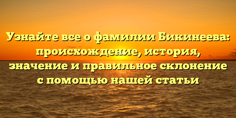 Исследуйте происхождение, историю и значение фамилии Бикинеева, а также научитесь правильному ее склонению в нашей статье