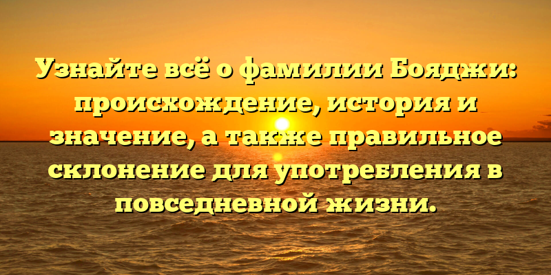 - Исследуем фамилию Бояджи: происхождение, история и правильное склонение для использования в жизни.