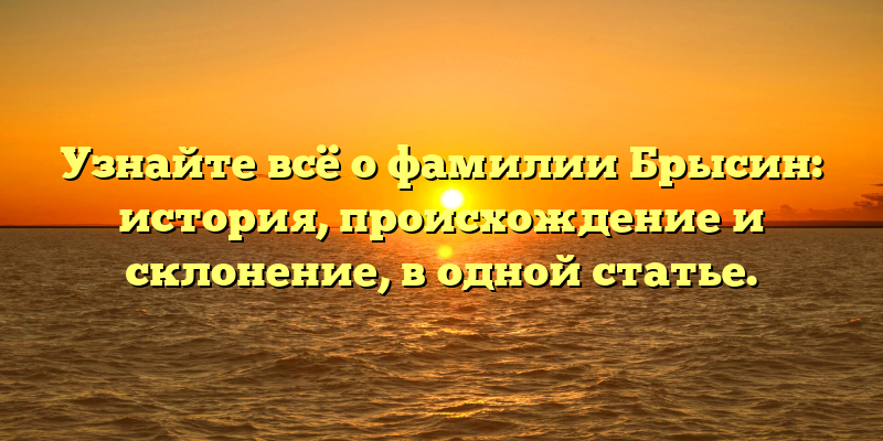 - Исследуйте историю и происхождение фамилии Брысин: комплексный гид по склонению в одной статье.