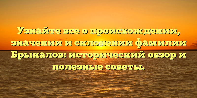 - Брыкалов: происхождение, значение и склонение фамилии в историческом обзоре и полезных советах — анализируем всю информацию, что вы хотели знать.