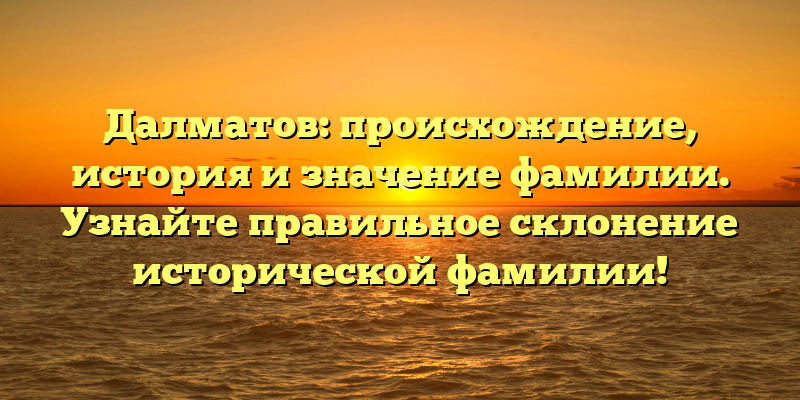 Откуда происходят Далматовы: история и значение фамилии. Полное руководство по правильному склонению исторического имени!